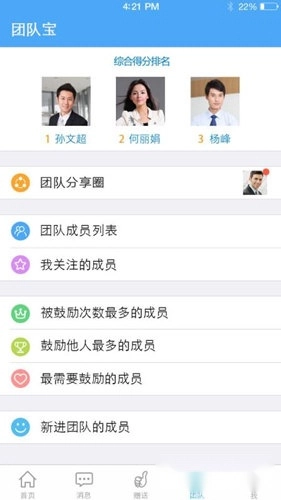 4.查看团队得分排行榜,你每天都能在这里看到团队间得分最高的前三名。
