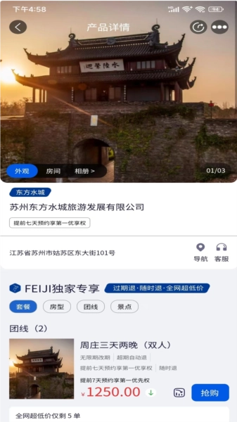 FEIJI旅行是您的一站式旅行搭档,致力于为您打造轻松惬意的出行体验。我们始终秉持品质服务的理念,从酒店甄选到景点推荐,每个环节都经过细致考量,力求让您的旅程兼具性价比与舒适度。不管您是商务差旅还是休闲出游,FEIJI旅行都能为您定制专属行程,助您开启一段充满惊喜的探索之旅。FEIJI旅行以用户需求为核心,提供高性价比的酒店客房和景点门票,让您在享受优惠价格的同时,也能拥有优质体验。我们丰富的旅游产品支持在线咨询和限时抢购,让预订过程变得简单高效。实时订单查询功能与便捷的核销流程,能帮助您有条不紊地安排旅行。简洁直观的界面设计与清晰明了的操作步骤,让每位用户都能快速熟悉使用,轻松完成预订,畅享无忧旅程。
