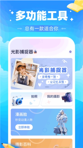 光影捕捉器是一款为摄影爱好者量身定制的相机应用,了多样的美颜滤镜,让每位用户都能尽情释放创意,轻松拍摄出专业水准的照片。此外,它还配备了全面的摄影知识库,帮助你在拍照过程中持续提升摄影技能。现在就行动起来,加入光影捕捉器的行列,发掘更多摄影的无限可能吧!