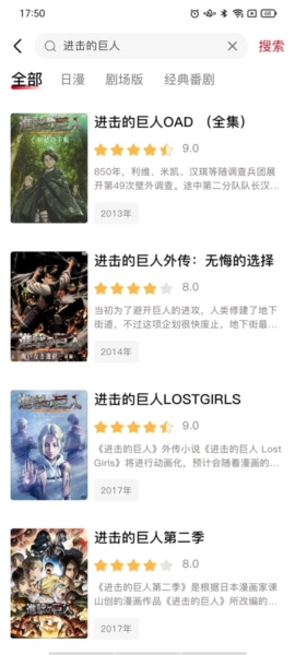 2、点击搜索栏后,我们就能直接搜索对应的动漫,例如《进击的巨人》。