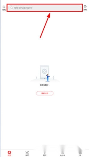 1、进入有赞精选主界面后,我们点击屏幕顶部的搜索框。