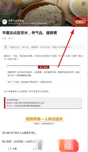 2、进入店铺详情界面后,点击右上角的“关注”按钮即可完成关注操作。