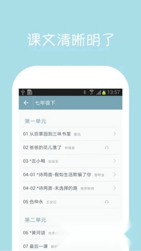 2、初中语文课堂课文高清配音,可跟读,可点读。