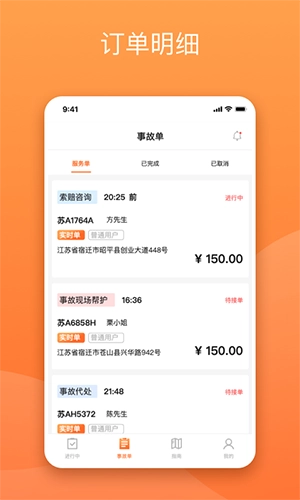 3、提供高清且详细的订单路线指引信息,能够实时查看事故订单的具体位置。
