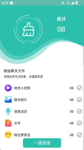 4、进入微信专清界面下,专项清理微信产生的垃圾