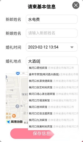 【一键地图导航】我们的软件支持一键查询酒店地址并直接导航,能帮助参加婚宴的亲友避免因迷路而错过婚礼时间。