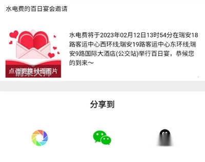 我们在制作好请柬后,点击右下角的【分享】。