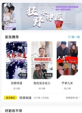 抖快网剧是一个主打高清流畅播放体验的平台,除了具备智能搜索、持续更新、自定义片单、离线缓存、自动同步等实用功能外,还融入了实时推荐、会员专属内容、留言互动等社交化设计,为用户打造更丰富多元的观影体验。在这里,观众能畅快追更,获取当下热门的影视内容。平台提供高品质的播放服务,确保用户观影过程流畅无阻,能够全身心沉浸在剧情里。智能搜索功能可帮助用户快速精准定位想看的影视作品,省去繁琐的查找步骤;持续更新的特点则让平台影视资源保持新鲜度,用户能第一时间解锁新内容。
