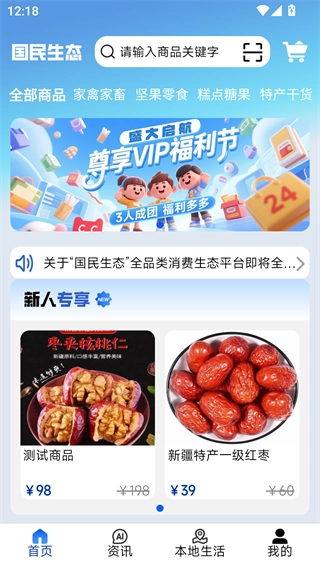 国民生态是一个实用性很强的综合性移动互联网商城,由湖南国民文化艺术有限公司负责开发与运营。平台涵盖的商品种类十分丰富:有各式坚果零食,能让你尽情享受美味;日常用品一应俱全,满足生活中的各种需求;特产干货汇聚各地特色,让你品尝不同地域的风味;酒水饮料选择多样;美妆护肤产品助力你打造靓丽形象;数码家电为生活带来便利;家居家纺则能帮助你装点温馨的家。总而言之,这个平台旨在为用户提供一站式的购物解决方案。