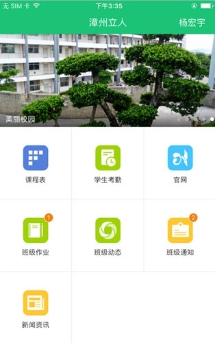 1、设有多个内容丰富的服务专区,首页呈现了新闻资讯、班级作业和班级通知等专区;