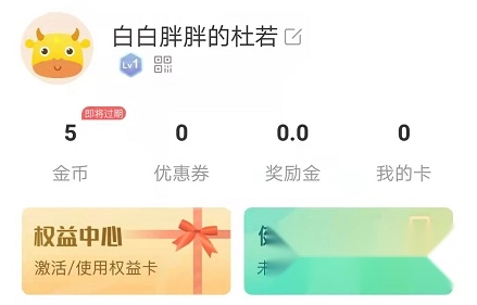 1、在软件的“我的”个人信息页面里,找到并点击“权益中心”这一功能选项。