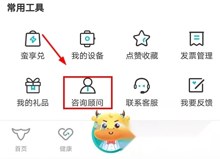 1、同样地,在我的个人功能界面中,选择并点击“咨询顾问”这一功能选项。
