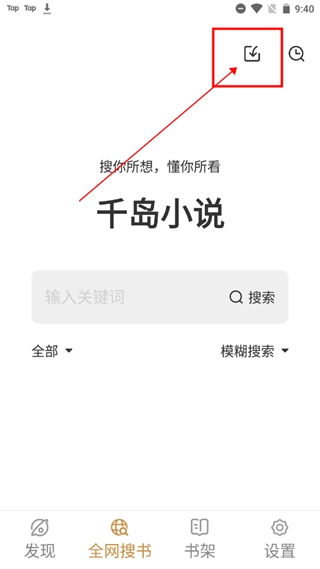 1、打开“千岛小说”,进入“全网搜书”页面