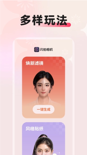 闪拍相机是一款融合独特相机滤镜与拍照美化功能的应用软件,为摄影爱好者打造别具一格的视觉体验。它提供丰富的相机特效素材,支持自定义添加趣味贴纸,让每一张照片都彰显个性。在这里,您能轻松了解各类独特的贴纸类型和风格,体验与众不同的拍照乐趣。无论是清新风格还是质感滤镜,都能在闪拍相机中找到属于您的独特魅力。每日更新的热门滤镜,让您时刻紧跟潮流,尽享高级质感的拍照体验。现在就加入我们,开启您的精彩拍照之旅吧!