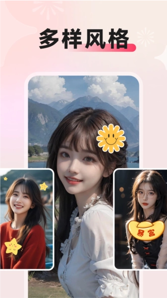 2、个性化贴纸:丰富多样的创意贴纸供您随心选择,让您能轻松制作出独具个性的照片。