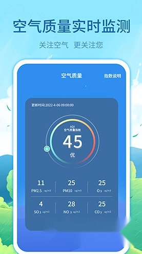 3、实时天气预报、空气质量指数、污染指数、降雨降温趋势等天气相关信息,变得更为权威且精准。
