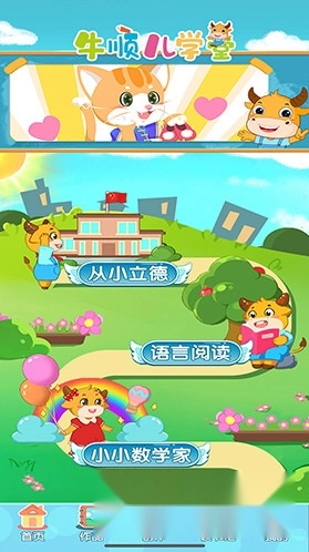 1、牛顺儿学堂这款软件的界面整体采用卡通风格设计,契合儿童的使用需求,能够有效吸引孩子的注意力;