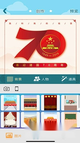 3、创作环节,儿童能够自主添加图片、文字、道具等元素开展创作,完成预览后就可以进行保存;