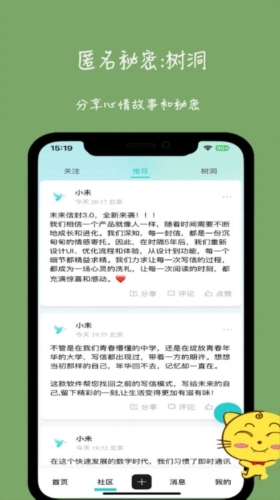 功能更新:我们除了支持文字、照片、视频等多媒体内容外,还对悄悄话和树洞功能进行了精心优化,以便您在保障隐私的前提下,尽情倾诉内心的声音。