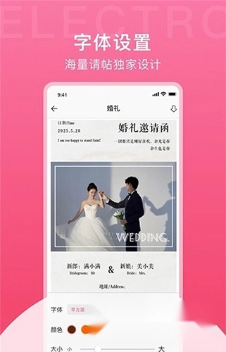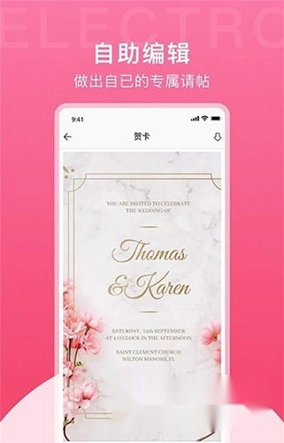 3、自助编辑:自由编辑功能十分强大,能够完全按照个人的想法制作出专属的请柬。