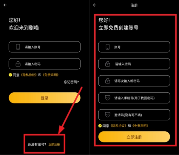 填写注册信息:在注册页面,你需要依次填写相关信息。首先输入你想注册的账号,账号可以是字母、数字或它们的组合,需确保账号的独特性;接着设置密码,密码要注意强度,包含字母大小写、数字等,以保障账号安全;然后填写你的手机号,用于接收验证码和后续账号相关通知;若有邀请码,也一并填入相应位置。所有信息填写完成后,点击“立即注册”按钮。只要你填写的信息符合要求且未被占用,就能成功注册剧喵账号,开启个性化的影视观看之旅。