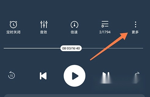 1、打开酷狗听书的内容播放界面,点击进度条右上角的更多选项按钮。