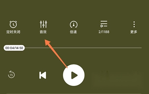 1、同样是在酷狗听书的内容播放页面,点击里面的音效选项;