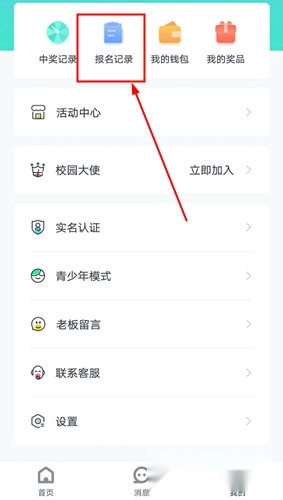 1、在“我的”个人信息设置界面中,能找到报名记录的功能选项,点击该选项就能进入报名记录页面。