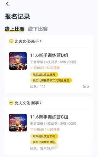 2、接着就能看到自己报名的线上或线下赛事,点击进入后取消报名就可以了。