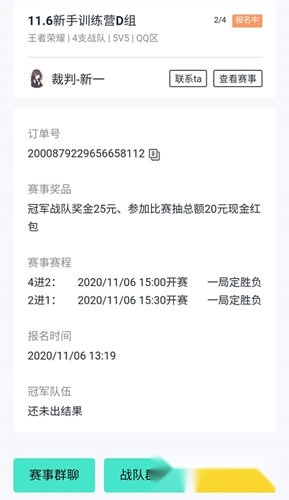 1、在比夫电竞的首页功能界面中,能看到各比赛战队的详细介绍,进入比赛界面后,点击“立即报名”功能选项就可以了。