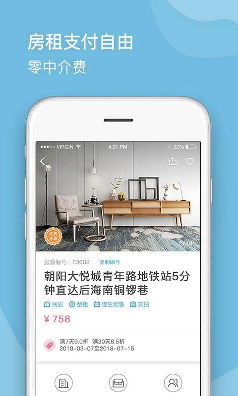 支持用户在线支付房租,费用自由支付,无中介费用;