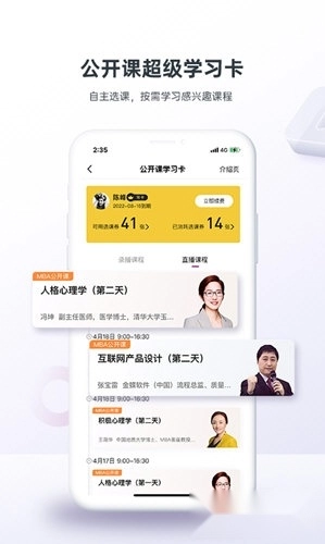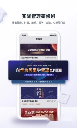 公开课:邀请名校教授、知名企业高管通过线上直播与录播等形式进行授课,持续为学员拓展新视野、深化新认知、启发新思路,助力所学知识快速转化为解决实际问题的能力。