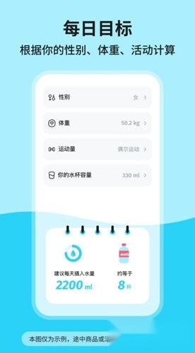 喝水提醒:您可以设置专属的喝水提醒,系统会按时提醒您补充水分,帮助您维持充足的饮水量。