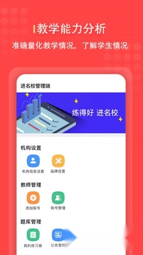 1、对管理端的功能栏进行了划分,包含了题库管理、机构设置与教师管理等内容;
