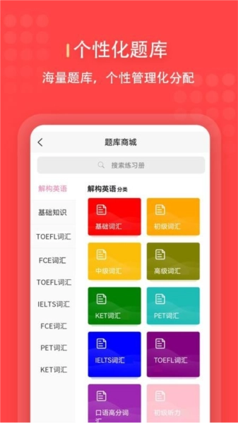 2、具备多种题库管理功能,在该管理栏中,可实现我的练习册管理、分类管理以及购买练习册等操作。