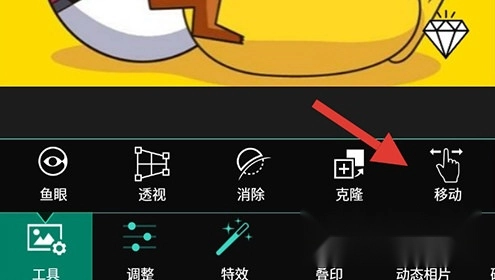 1、进入相片大师编辑页面的工具选项,选择其中的移动供;