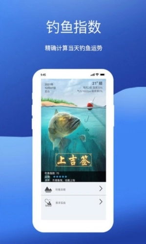 1、钓鱼指数:结合用户垂钓水平、当日天气状况与水温条件综合测算得出的数值。今日大概率能有所收获,不妨来算一算!