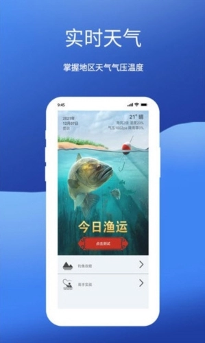 2、钓鱼天气:实时掌握钓鱼天气情况,无需位置权限,做到不打扰、无推送。