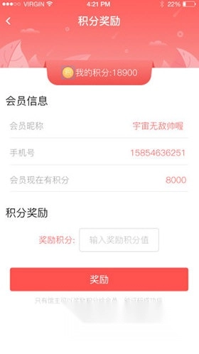 积分奖励功能,店主可以选择给会员增加奖励积分;