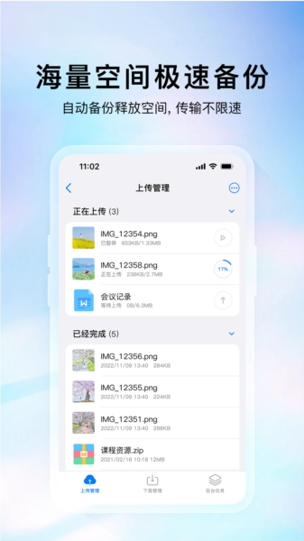 海量存储:不管您的文件是大是小,云存宝都能为您提供充裕的存储空间,让您的数据安全无虞。