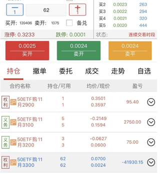 其特色的T型报价图表以时间为横轴、权利金为纵轴,将相同到期日、不同行权价的认购与认沽期权集中呈现。图表结构清晰:上方区域展示虚值合约的买卖报价,中间区域对应平值合约,下方则为实值合约的交易价格,方便用户快速定位并选择合适的期权合约。