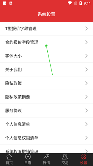 入口:设置->合约报价字段管理