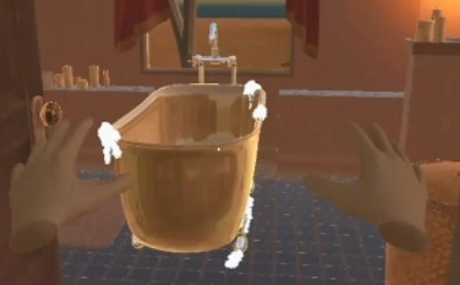 接着召唤小忍朝浴缸走去,玩家得用一只手指着小忍,另一只手指向浴缸,示意她进入浴缸里。