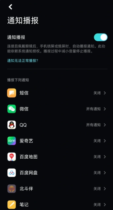 完成后根据需求勾选需要播报的应用即可