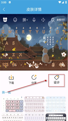 在首页找到“设计”或“自定义皮肤”选项,进入编辑器进行个性化设置。完成后点击“预览”查看效果,满意后点击“保存”并应用到输入法。