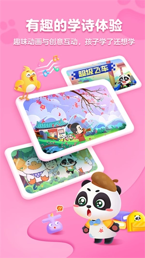 【趣味动画】用生动动画演绎诗词创作背后的故事,带领孩子代入具体场景,帮助建立对古诗的深层理解;【唱诵结合】通过唱和诵的方式结合,强化孩子对诗词节奏和韵律的感知,让学习过程既不用担心发音问题,又充满趣味性;【知识拓展】拓展诗词相关的文学常识与历史典故,助力孩子提升文学素养;【复习巩固】将古诗的场景、意象转化为图片选择等互动形式,通过练习强化孩子的认知;【诗词诵读】由专业老师领读,鼓励孩子开口表达,还能进行精准的发音评测;【游戏复习】设置记忆宝箱等趣味游戏来复习所学内容,学练结合让效果更佳;【个性化学习报告】生成专属学习报告,帮助孩子查漏补缺,及时反馈学习情况,激发学习兴趣;【诗词电台】支持无限次回放,方便孩子随时随地听读磨耳朵。