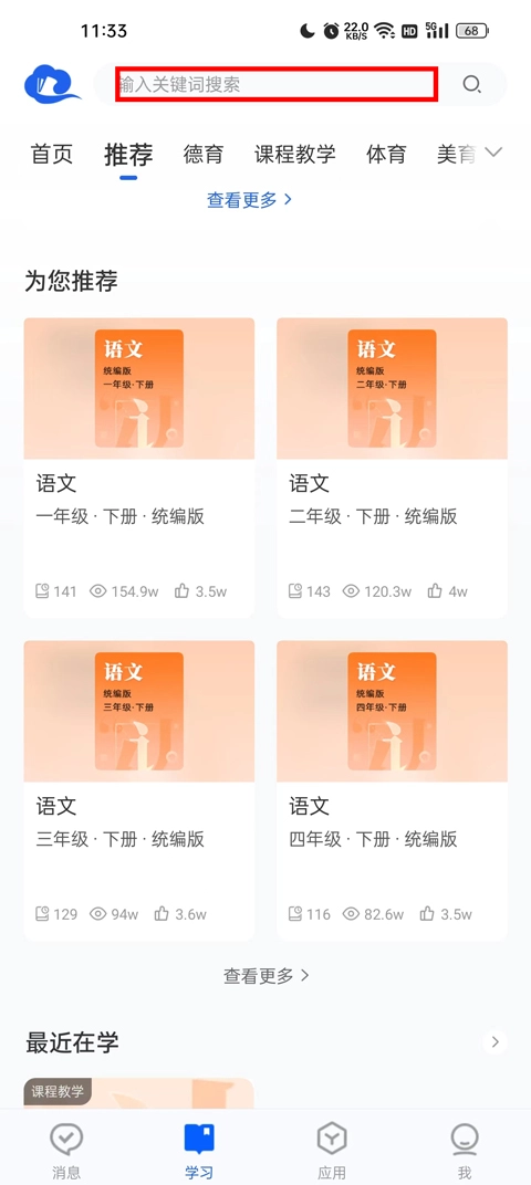 你可以通过点击上方搜索栏搜索,或者在分类里查找,找到后点开你需要学习的内容。