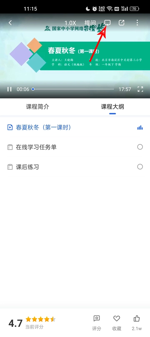 用户需要先打开自己要投屏的内容,然后点击进入学习页面。