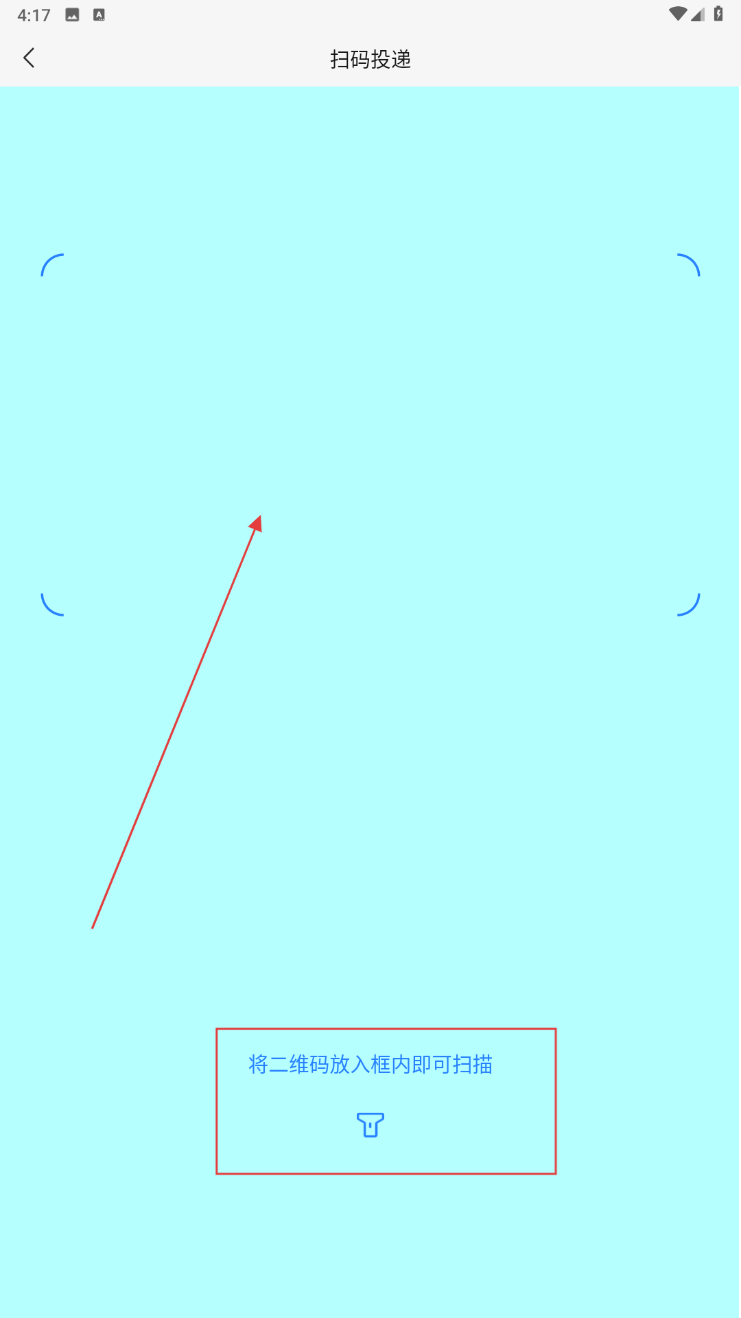 4进入扫码寄件页面后,把快递对应的二维码对准扫描区域,完成扫码步骤。