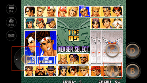 6、游戏里,玩家需同时操控三个角色展开格斗,率先把对方三个英雄打败的一方获胜。格斗开始后,利用右边ABCD的各招式按键向对手发起攻击。